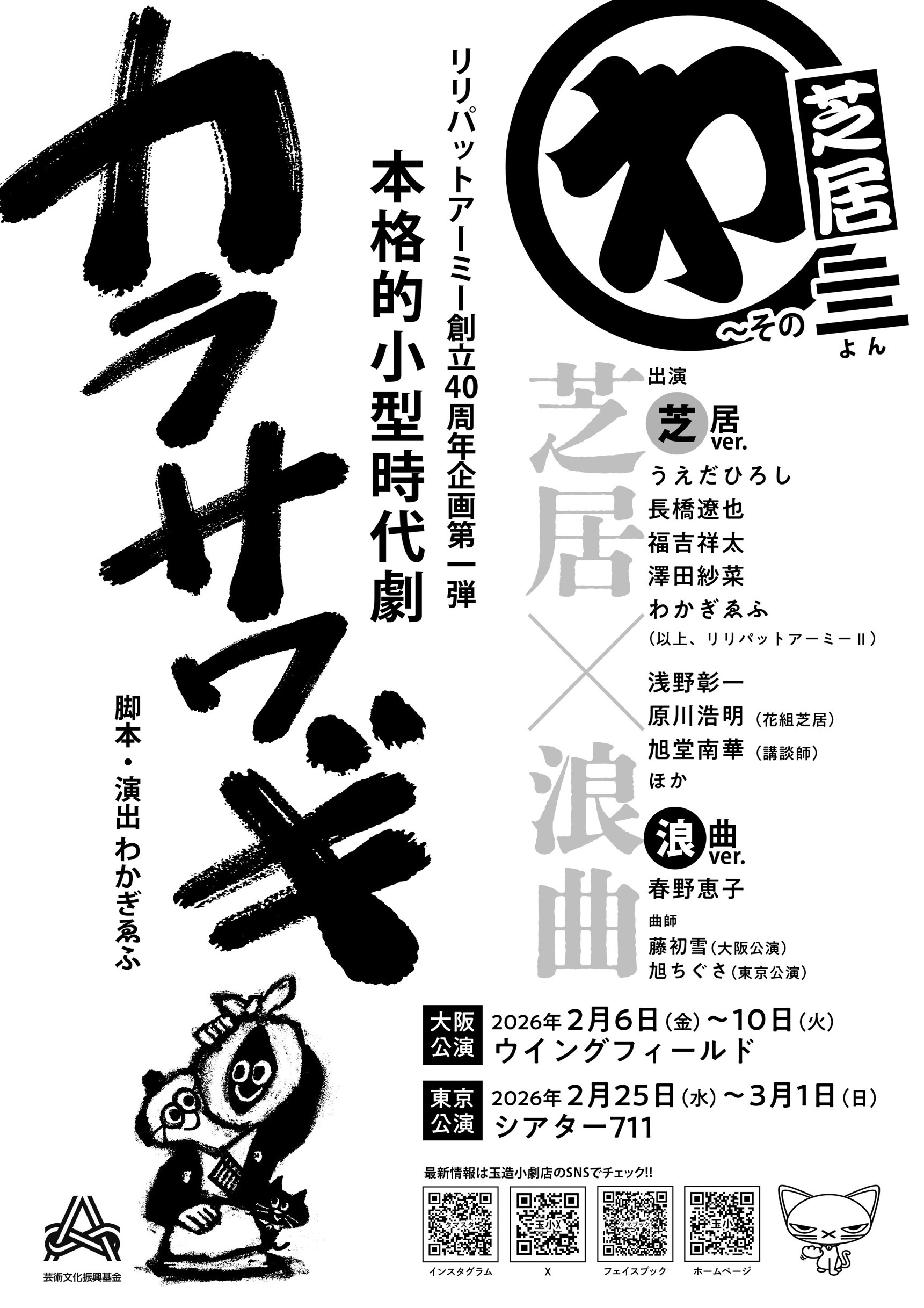 【大阪】 2026年2月6日−10日 ウイングフィールド 【東京】 2月25日−3月1日 シアター711